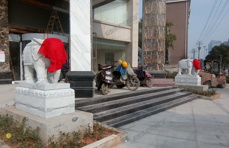工艺展示 SHOW 案例展示 精选大象款型 官方微信 在线QQ 0595-87286156 客服电话 网上店铺 您当前位置:首页 > 工程案例 > 案例展示 > 上饶京都新世界大酒店石雕大象紧锣密鼓的雕刻安全的包装是保证优质订制品的必要条件01细花雕刻大象完工02侧面展示03正面展示04芝麻灰石雕大象05等待发货06雕刻完成上饶酒店招财象摆放效果展示......